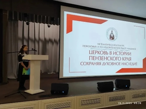 26 ноября в г. Пенза состоялся Региональный конкурс поисковых и исследовательских работ учащихся "Церковь в истории Пензенского края. Сохраняя духовное наследие". Климанова Варвара, обучающаяся 7 в класса Шемышейской школы, представила работу "Никольский храм на берегу Узы" и была награждена Дипломом.